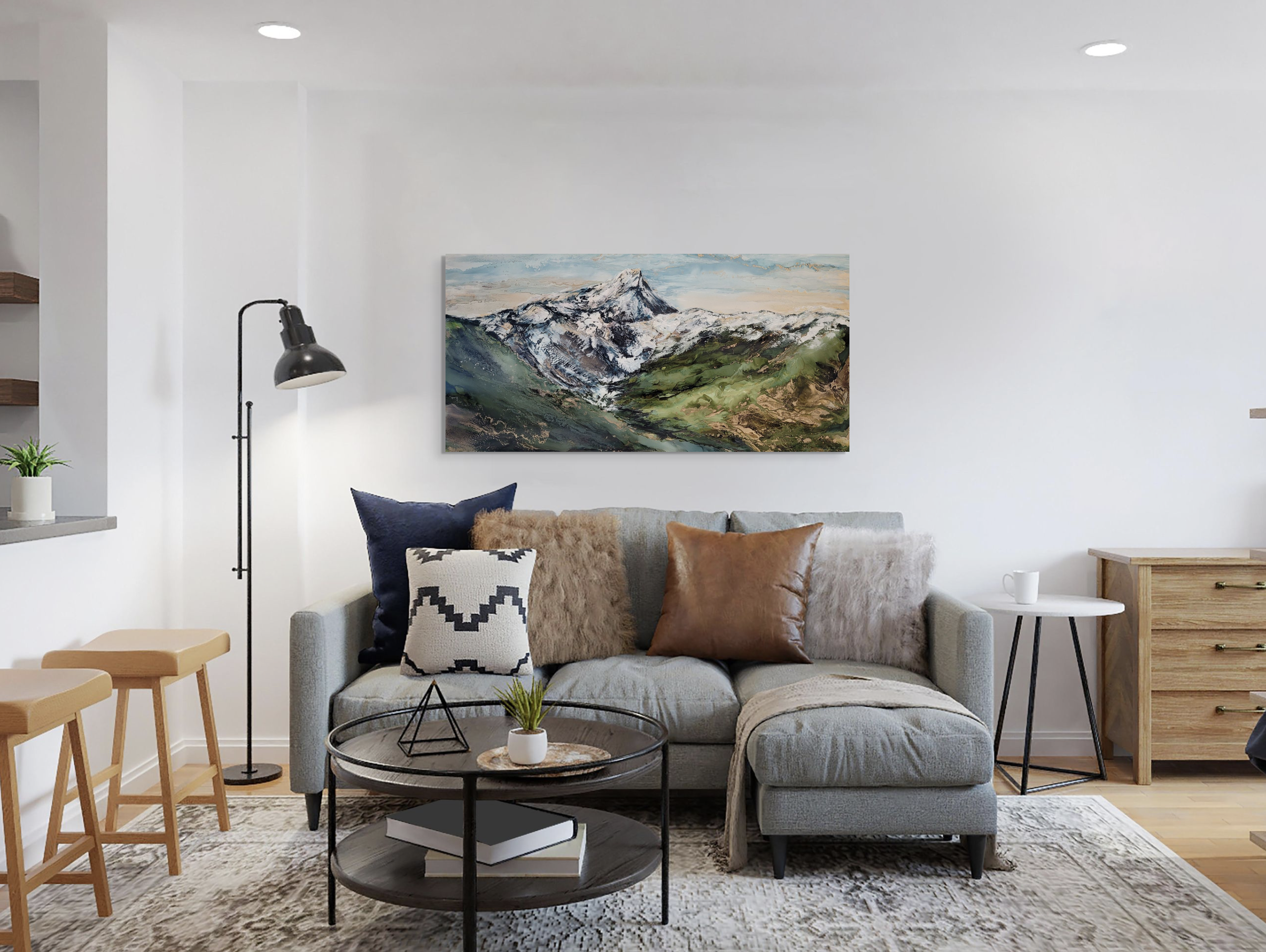 Original alcohol ink local landscape painting of Mount Nelson at sunset by local artist Paulina Tokarski.